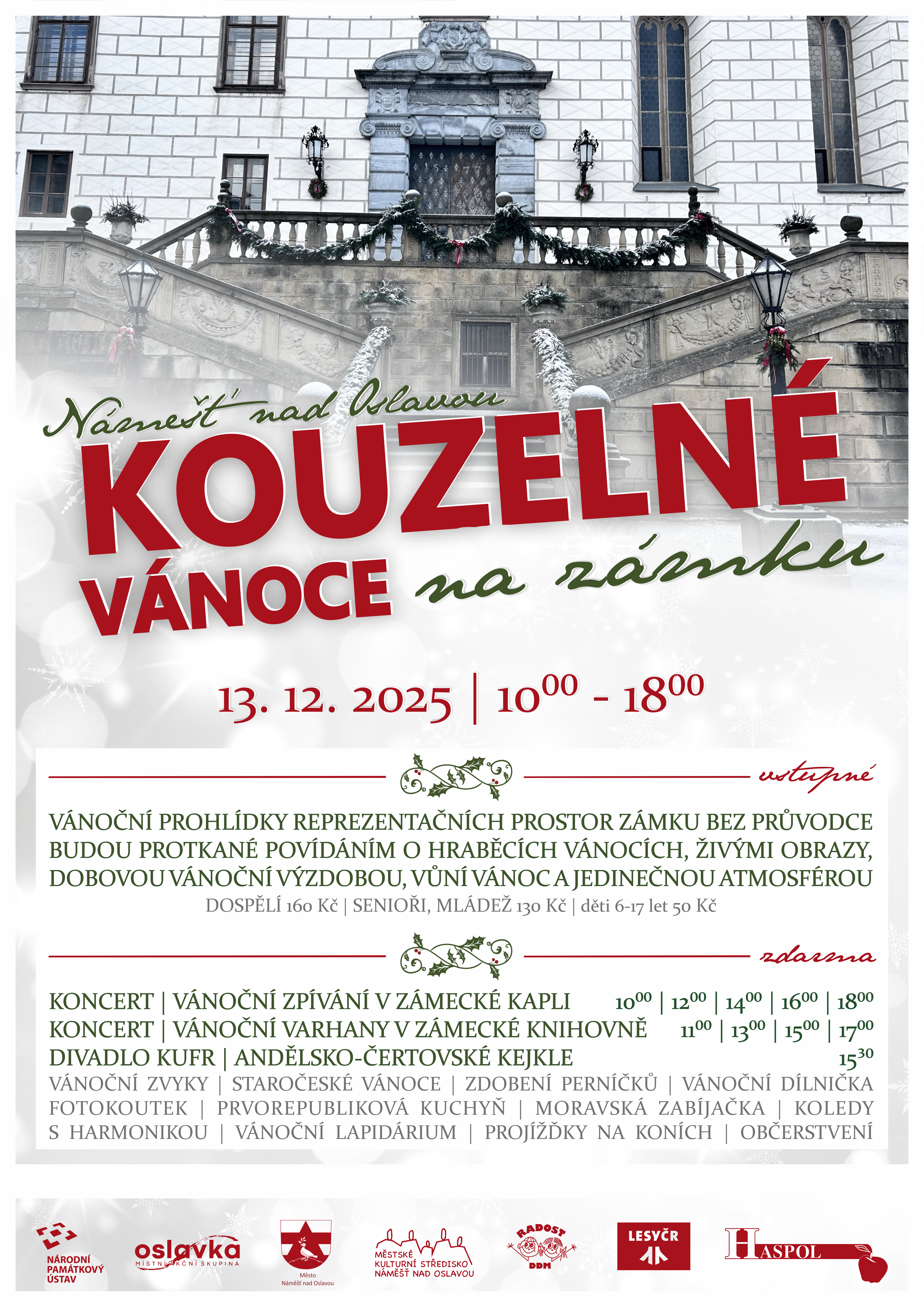 Už jste to slyšeli? 13. 12. 2025 se otevřou brány vánočního zámku v Náměšti nad Oslavou, aby všichni kteří přijdou, pocítili to pravé kouzlo Vánoc.
